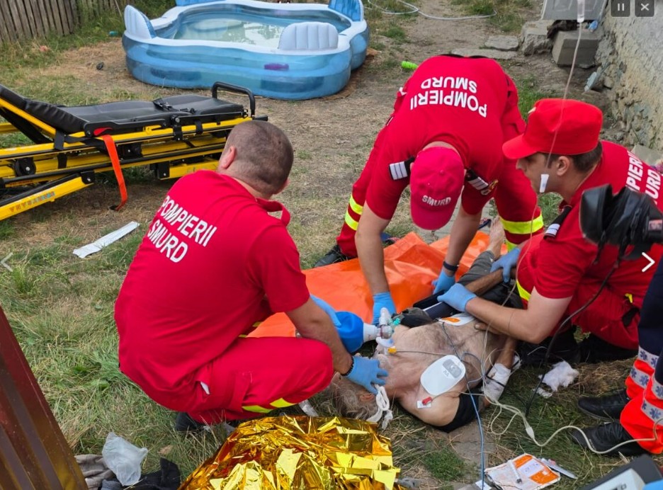 „L-am legat pe bărbatul acela care era tăiat la mână cu ceva din trusa medicală. L-am văzut pe domnul aici jos, în curte, cu capul în jos, cu picioarele în sus şi am început să-i acord primul ajutor”, a povestit un martor.
